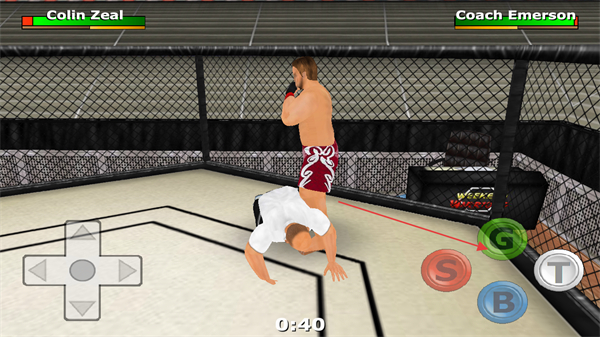 4、持续压制倒地的对手,完成攻击连招,推进摔跤对决进度。