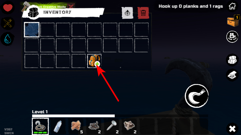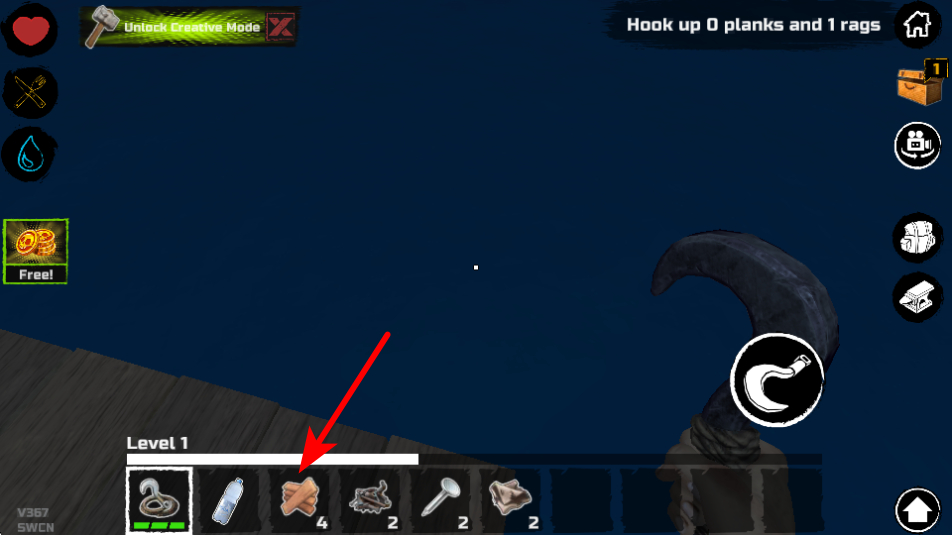 3、按照箭头指引,查看下方物品栏,可确认当前收集到的资源数量如木板等,掌握储备情况。