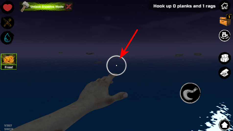 1、进入页面点击界面右侧的手型图标,可互动拾取海上的木桶,获取桶内的资源道具。