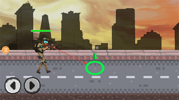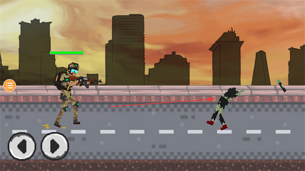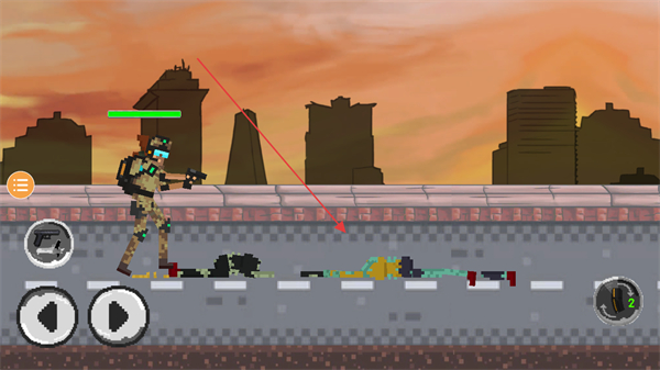 2、通过左右方向键控制士兵移动,瞄准路面的僵尸目标准备攻击。