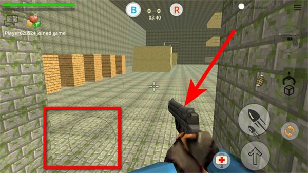 1、进入游戏场景后,移动视角瞄准区域,使用当前武器做好战斗准备。