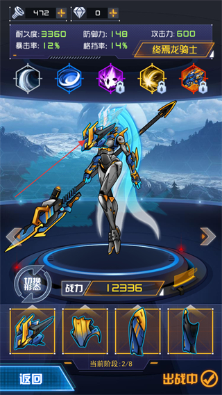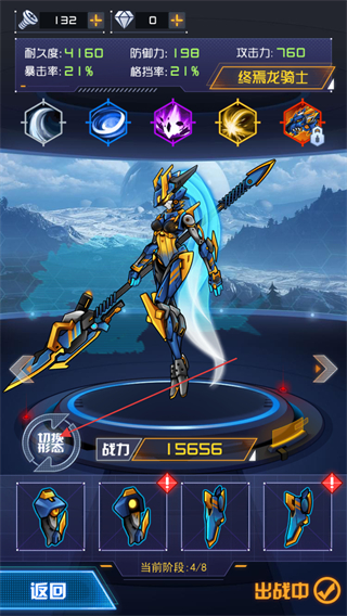 4、点击机甲左下角的切换形态按钮,可以查看机甲的龙形态并进行部件组装。