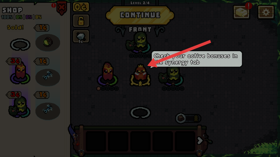 3、在英雄阵容界面,查看箭头指向的英雄相关提示,了解并利用英雄间的协同增益效果,在战斗中获得更多经验,提升等级。