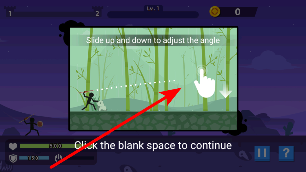 3、接着进行攻击,在战斗中,根据敌人的位置和教程所学,操控火柴人发起攻击,利用武器等手段打击敌人,推进战斗进程。