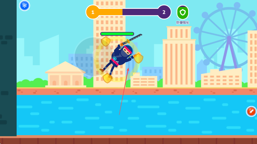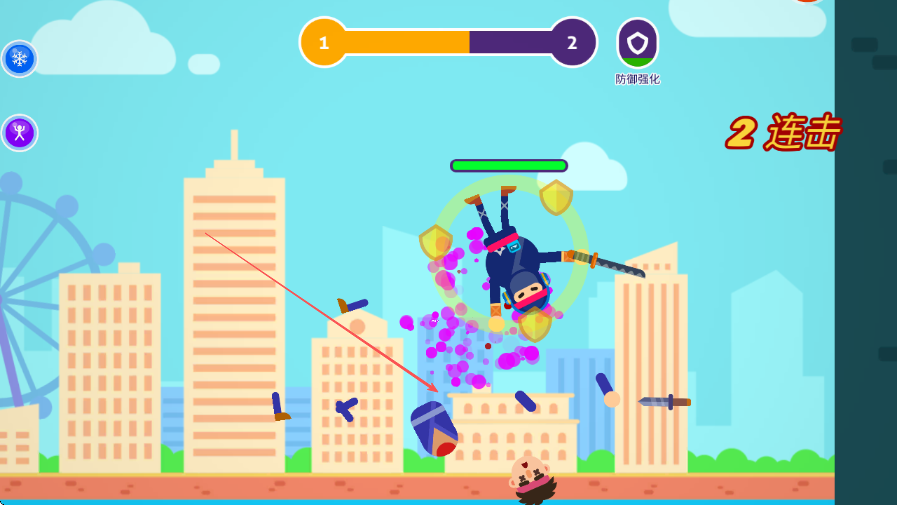 1、进入游戏,上方进度条显示关卡进度,操控角色靠近敌人进行攻击。