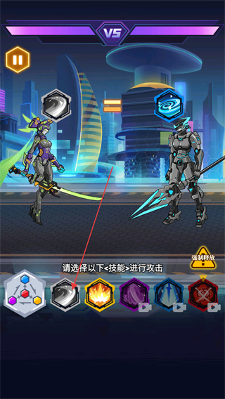 2、对战开始后,从下方技能栏选择技能,向敌方机甲发起攻击。