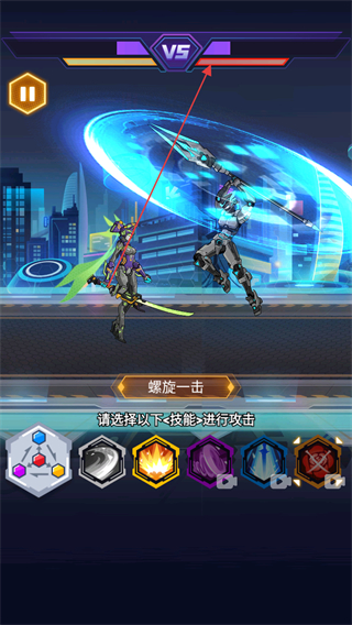 4、选择螺旋一击等技能,持续攻击敌方,推进对战进程。