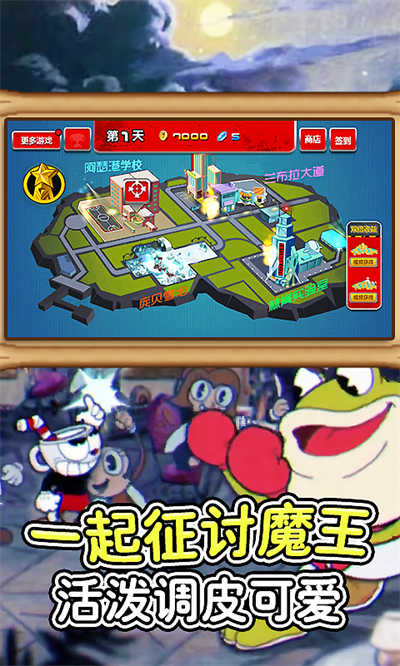 狂扁街头英雄游戏是一款经典茶杯头双人大冒险游戏,重拾童年茶杯头双人对战乐趣,感受在卡通茶杯头世界中大冒险,该游戏采用了经典横版卡通手绘风格,精致可爱的角色设定绝对让你眼前一亮,感受游戏乐趣。