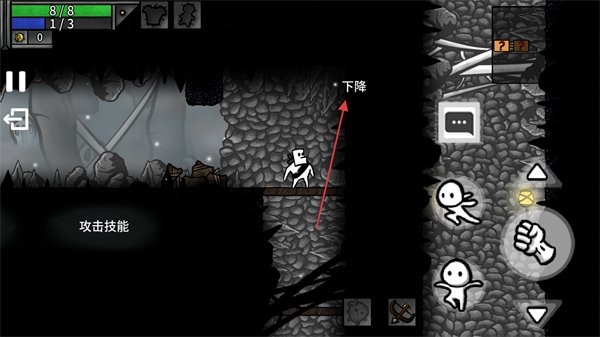 2、控制角色向目标方向移动,通过操作实现下降,继续探索洞穴区域。