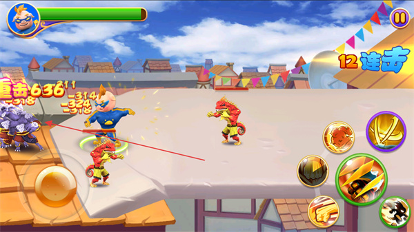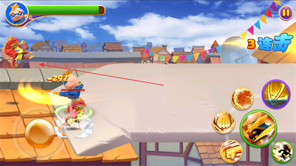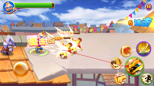 1、操控角色攻击敌人,积累连击数,触发重击,造成高额伤害。