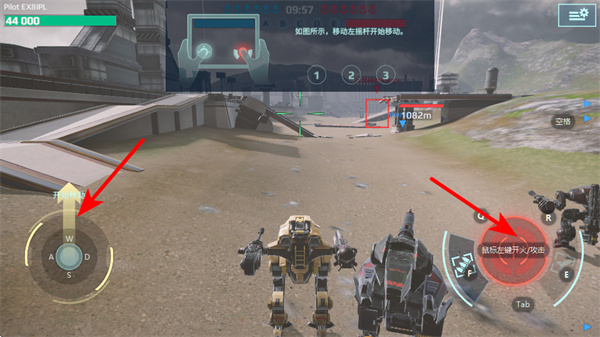 2、进入战场后操控移动按钮调整机甲位置,这是推进战斗的基础操作,移动后可让机甲靠近敌方目标,为攻击输出铺垫。