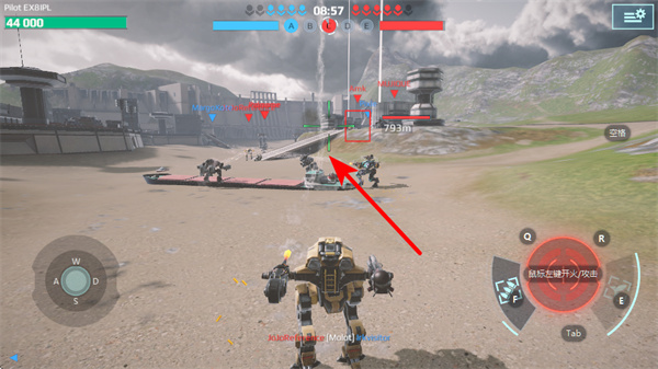 4、操控机甲向敌方目标区域移动,保持节奏,这是压制敌方的重要操作,靠近目标后可提升攻击命中率,加快胜利的进度。