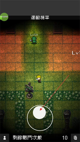 2、处于遇敌场景时,点击下方操控按钮移动角色,靠近敌人以触发战斗,界面会显示剩余战斗次数。