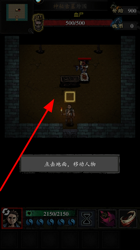3、点击地面,可移动人物,通过移动人物,能探索不同的古墓区域,接近敌人或寻找关键物品,推进冒险进程。