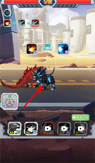 3、在回合战斗界面,点击底部的技能图标释放对应招式,不同技能有不同的伤害倍率与效果,可根据敌方血量选择合适的技能输出。