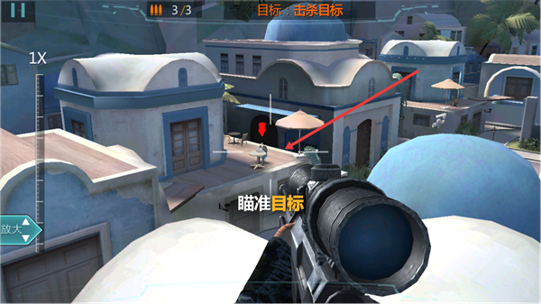 3、放大瞄准镜至3X,对准目标后按发射键射击。