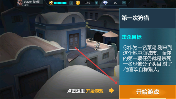 1、查看第一次狩猎任务,点击开始游戏,开启击杀目标的任务。