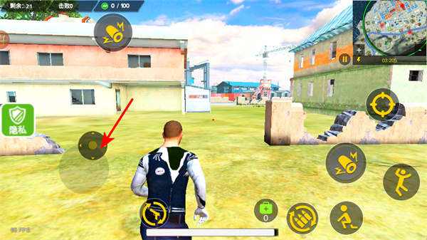 1、游戏中通过摇杆操控角色移动,这是在竞技场景中转移、寻找资源的基础操作,注意方向,确保角色建筑掩体灵活穿梭。