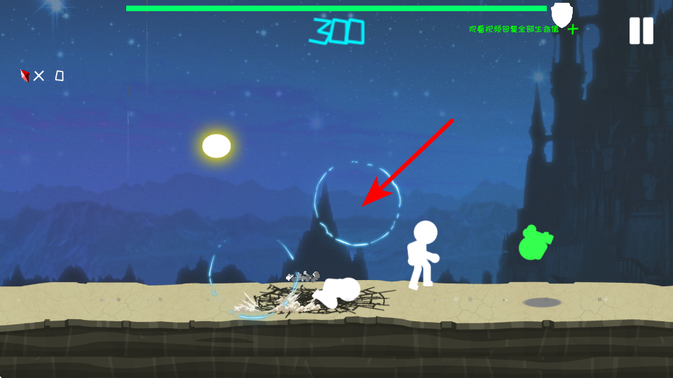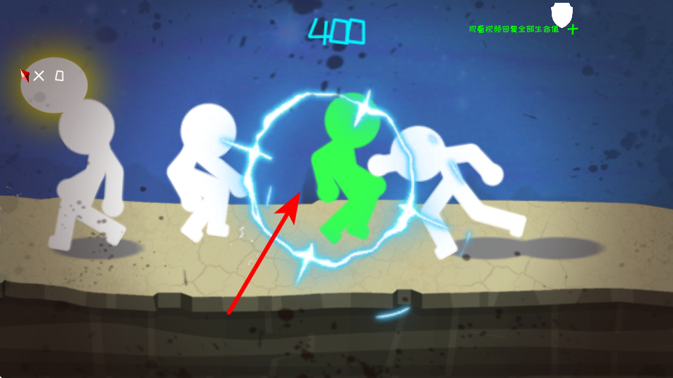 3、按照红色箭头指引,让角色进入技能范围圈,可触发群体攻击效果,这是积累积分重要操作。