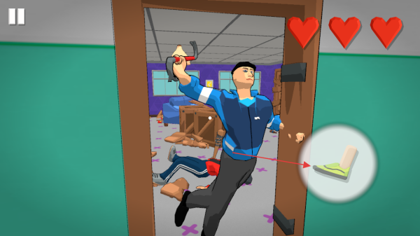 1、游戏开始,通过右下角虚拟按钮操控角色进入房间,会看见敌人已经倒地。
