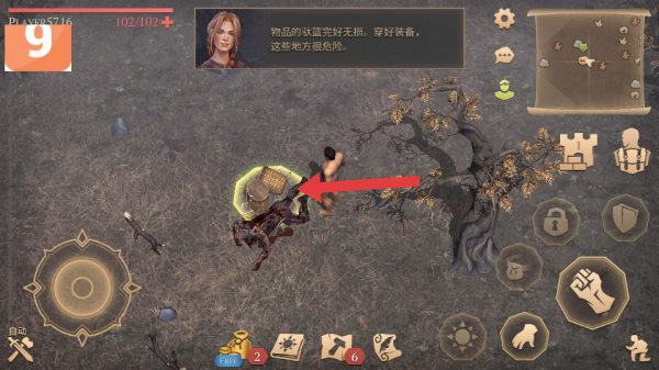 2、发现完好的驮篮时,靠近箭头指向的驮篮,可从中获取物品,这些物品能为后续生存提供帮助,同时记得穿好装备,应对危险环境。
