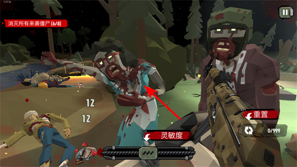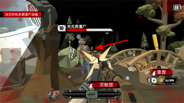 2、战斗中瞄准如夹克男僵尸之类的敌人,确保十字准星对准其要害,这是高效消灭敌人的关键操作,注意敌人的移动状态。