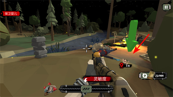 4、在保卫婴儿等任务中,朝着箭头指引的目标区域移动,可完成任务目标,移动时需兼顾消灭沿途敌人,确保顺利完成。