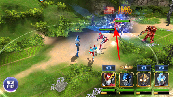 2、游戏中依照箭头指引锁定敌方目标,角色将自动对其发起攻击,推进基础操作,攻击削减敌方血量。