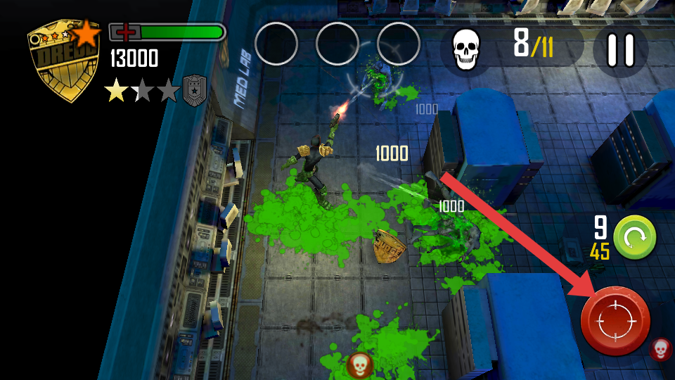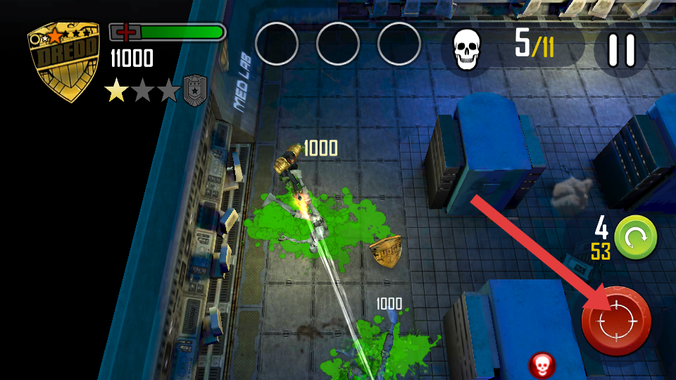 3、面对多个敌人时,持续点击箭头指向的射击按键,对敌人进行火力压制,快速清理敌人,提升战斗效率。