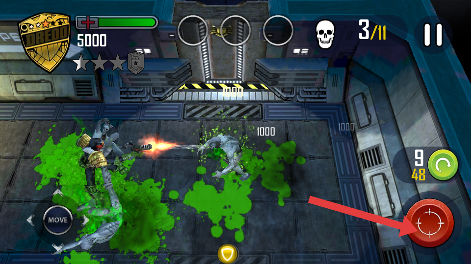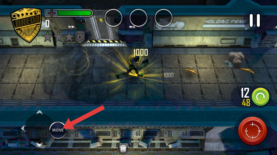 1、在场景中移动时,点击箭头指向的MOVE移动按键,操控角色在场地内移动,调整位置以更好地应对敌人。