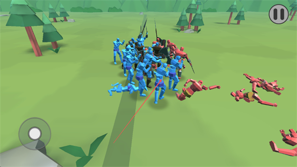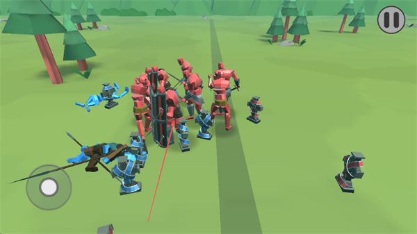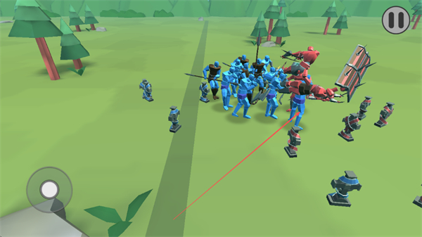 2、在草地战场中,操控蓝色兵种与红色兵种近战交锋,调整阵型,利用兵种属性作战。