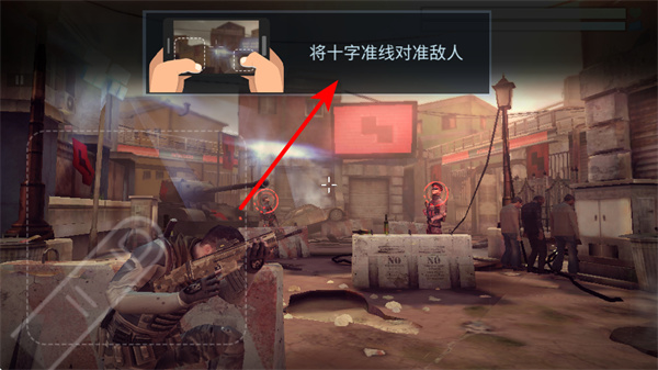1、游戏中,需将十字准线对准敌人,这是精准射击的基础操作,确保能命中目标。