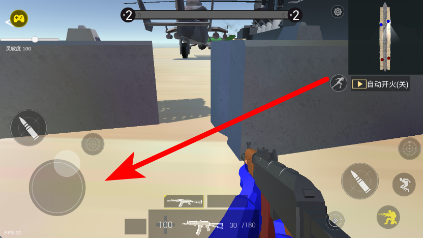 3、接着操控角色,进入战斗场景后,通过左侧虚拟摇杆控制角色移动,右侧则有射击、跳跃等操作按钮,根据战场情况,灵活操控角色行动。