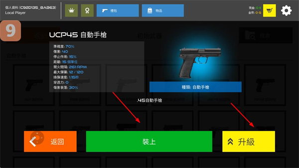 3、在武器界面,装上或升级武器,增强攻击能力,应对更强敌人。