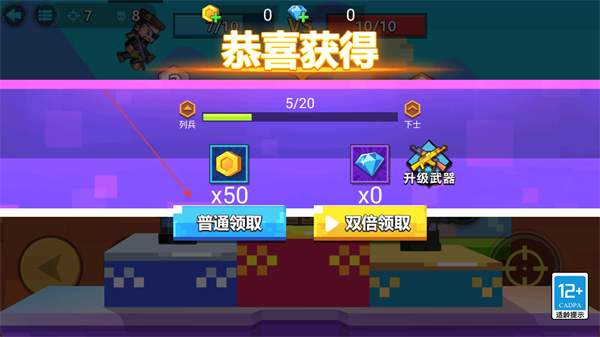 4、对战结束后,可领取金币等奖励,积累金币可用于升级武器、解锁角色等。