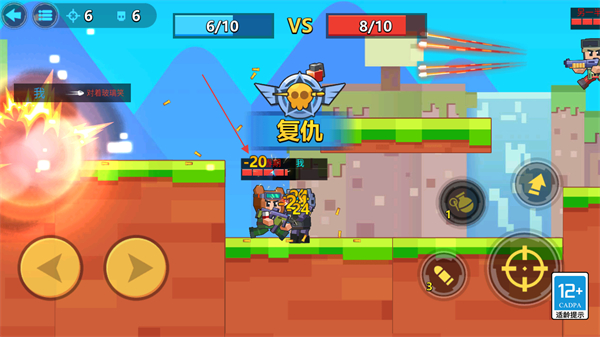 3、注意躲避敌人的攻击,躲避的同时,对着敌人攻击,要随时注意头顶血条。