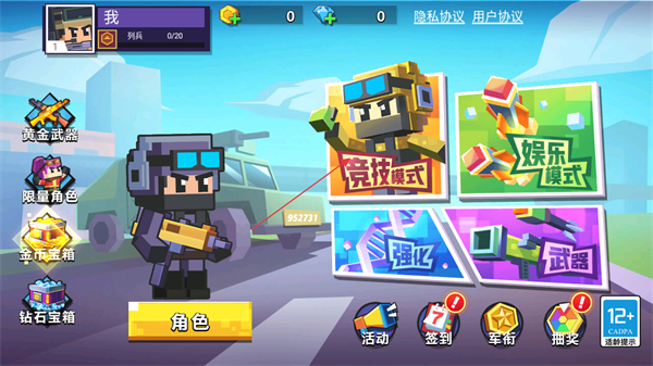 1、打开枪战行动重生游戏,在主页面选择竞技模式,进入游戏对战页面。
