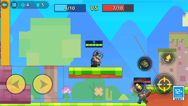2、在对战页面通过左侧的方向按钮控制角色移动,点击瞄准按钮瞄准敌人。