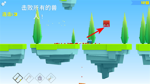 4、朝着红色箭头指引的兽人方向攻击,击败所有兽人以完成关卡目标,获取游戏奖励。