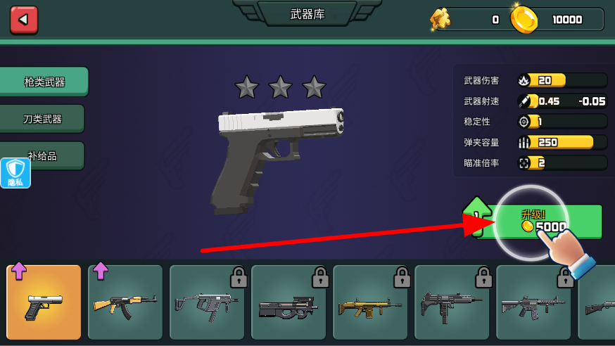 2、前往武器库,使用金币对武器进行升级,提升武器的伤害、射速等属性,让武器在对战中能发挥更强的威力。