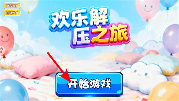 1、进入游戏界面后,点击开始游戏按钮开启解压之旅,这是进入游戏的关键操作,准确点击才能进入关卡场景。
