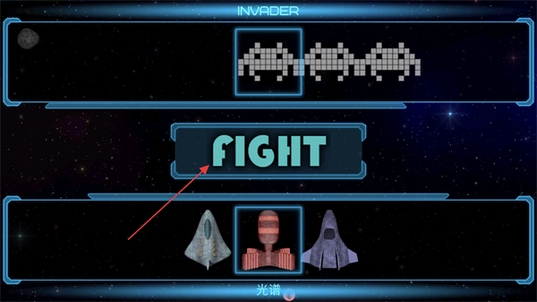 1、选择飞船如光谱号后,点击FIGHT进入战斗,准备迎战太空入侵者。