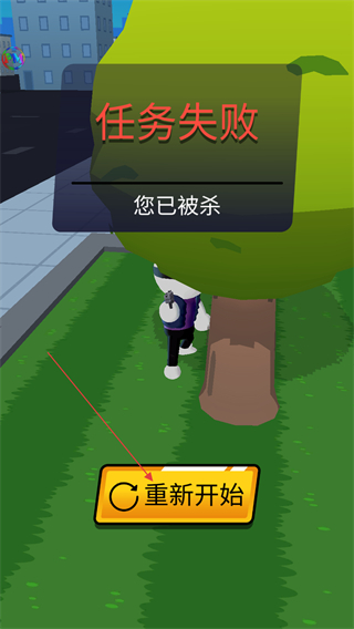 2、如果一枪没中将会打草惊蛇,被对面的盗贼反杀即任务失败,点击下方重新开始按钮重开游戏。