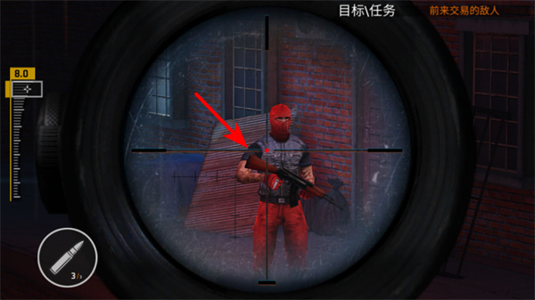 3、瞄准敌人时需将准星对准敌人身体关键部位如手臂,确保射击命中以造成有效伤害。