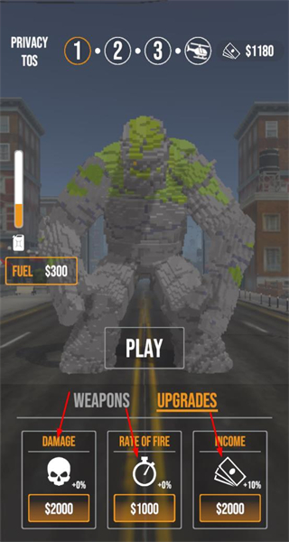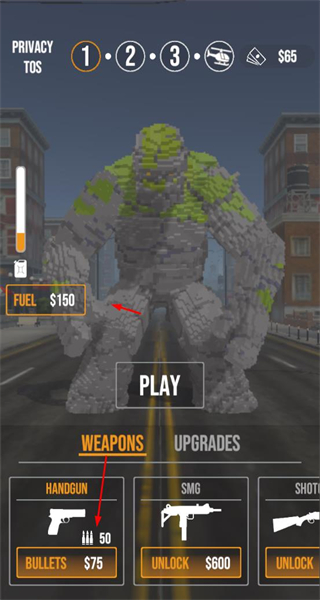 1、进入游戏准备界面后,点击PLAY按钮开启挑战,开启射击怪兽的进程。