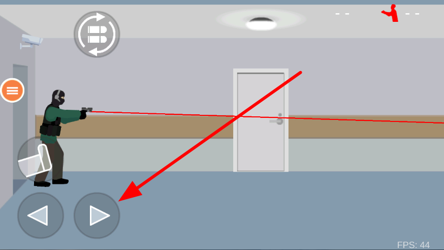 2、场景中,通过下方的方向按钮操控角色移动,调整位置,以便更好地瞄准和射击僵尸,灵活移动能躲避僵尸攻击并寻找有利射击点。