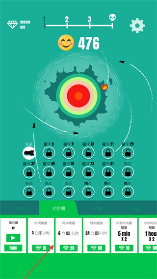 2、在助推器栏上可以购买助推器,加速场面上的导弹的进攻速度。