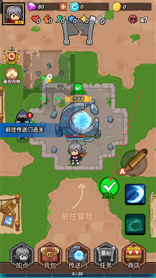 1、在游戏界面内寻找传送门的位置,点击进入按钮前往关卡地图进行冒险。