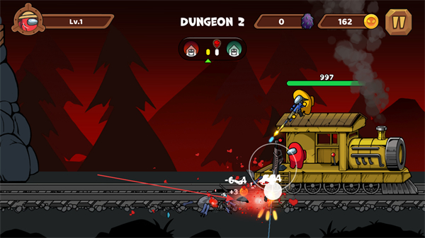 2、持续射击空中和地面敌人,快速清理怪物群,保护火车前进。