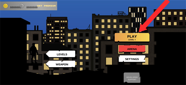 1、进入游戏界面后,点击PLAY开启强尼大战僵尸的战斗关卡,这是进入游戏的关键操作,准确点击即可开启对战。